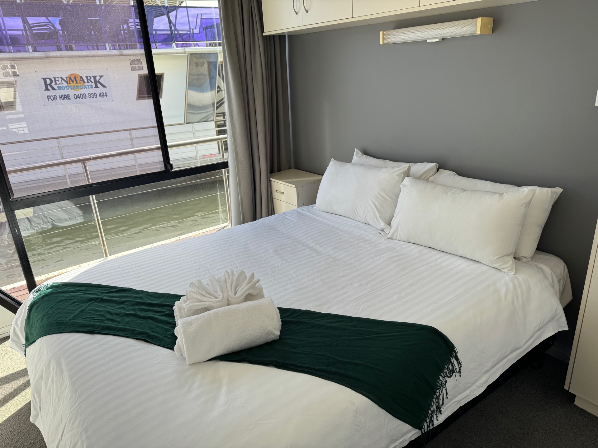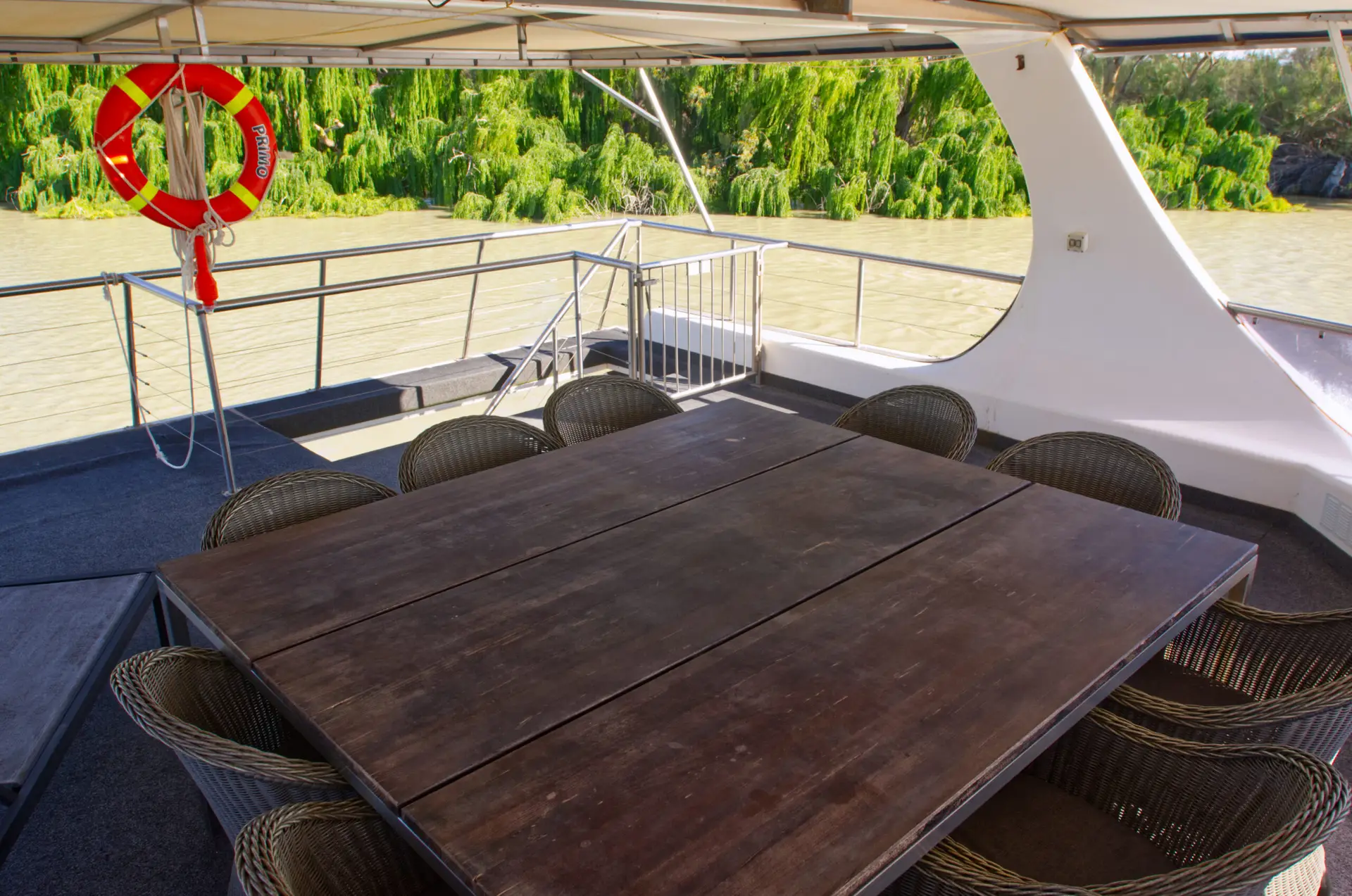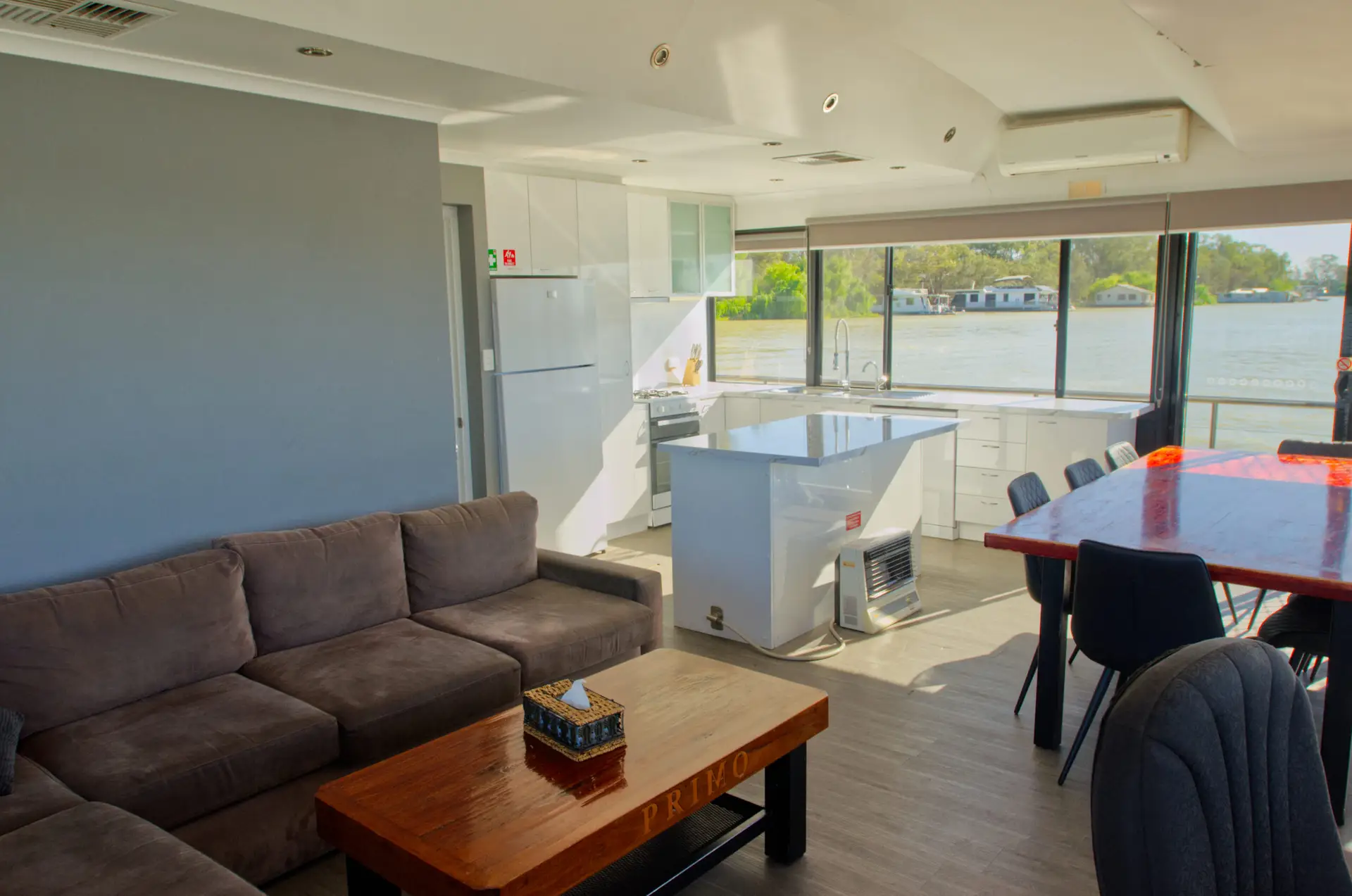 Primo is a pet-friendly houseboat that accommodates 10-12 guests. It offers 5 queen bedrooms (4 can be configured as twin-share). The front lounge includes a sofa bed for extra sleeping space if needed. Primo has a large upper deck for entertaining.