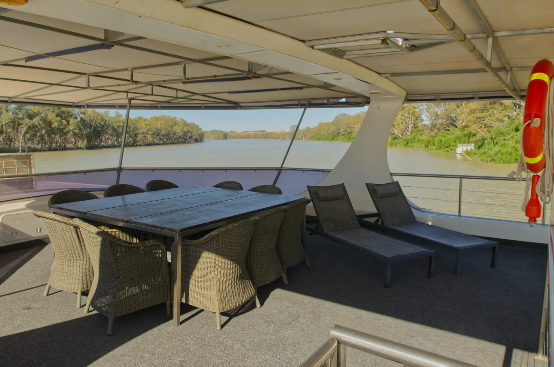 ~ Carpeted top deck with awning