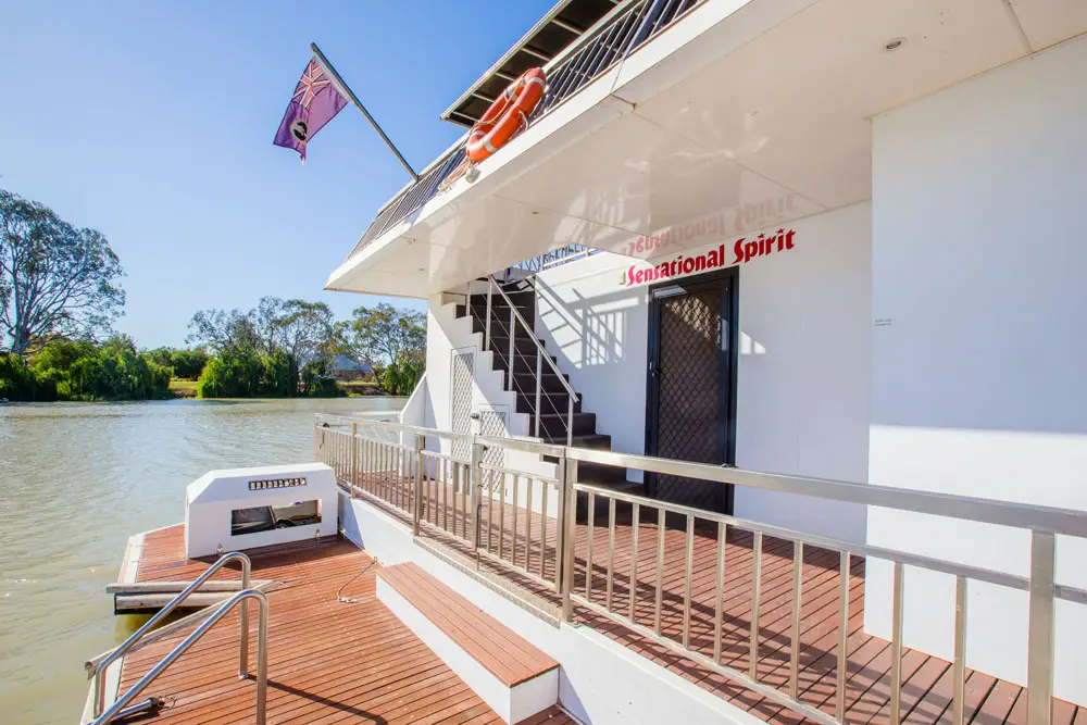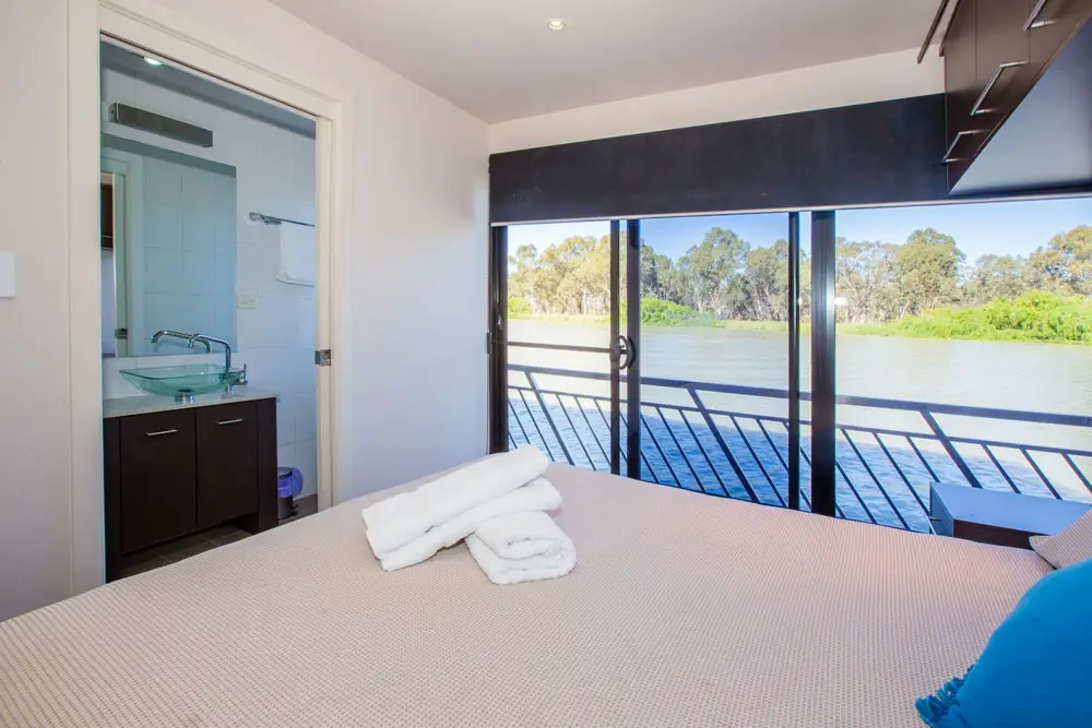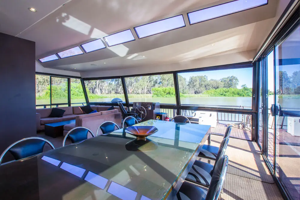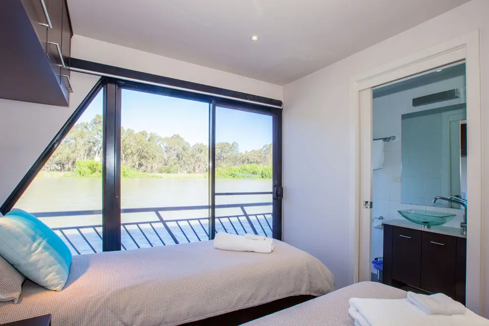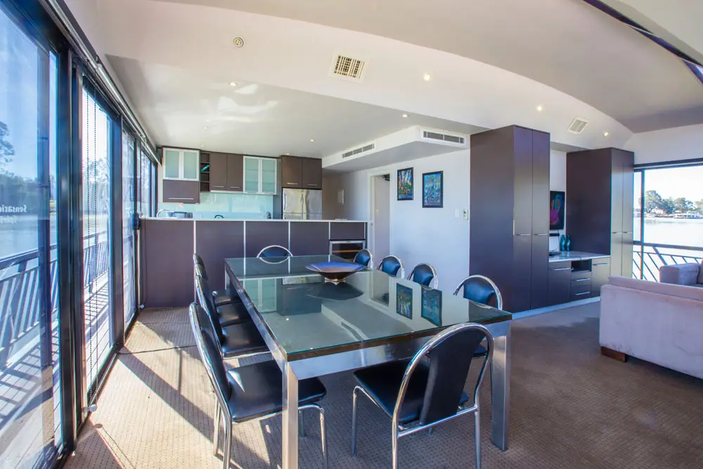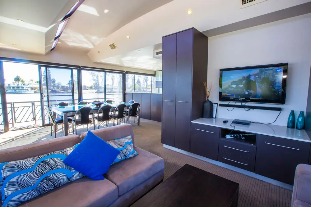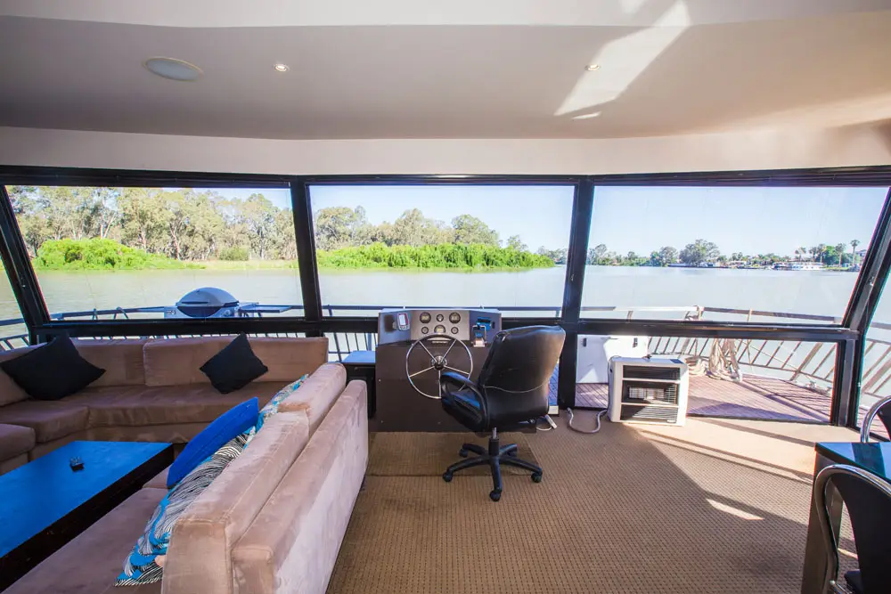 Take in the stunning views from the top deck, relax in the spa, or enjoy a drink at the cocktail bar. Inside, catch a movie on the 42″ wall-mounted TV, or head to the back deck for a spot of fishing or water skiing on the Mighty Murray River.